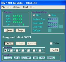 There are three graphical simulators available for the IBM 1401. Like the IBM 360 simulator I wrote using Lazarus, my IBM 1401 one (open source) works with the HDIAL and VDIAL programs in the ZIP file, see below. I have Autocoder and SPS programs, and some use "cards" and some use switches. This works in Windows 8, 7, Vista Win64 as well as Win32 on XP. Lazarus itself is also cross platform but ONLY use the 32 bit version. Another was written in JAVA, and the Autocoder which is integrated into a GUI IDE, was written in FORTRAN. Another is oriented towards SPS, and it runs the two pass SPS system, and was written in Delphi. All these simulators are small, free, and work first time. |