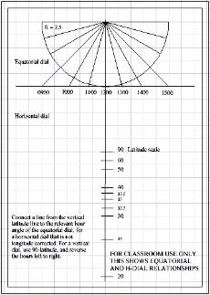 A nomogram that is not type 1, 2, nor 3. This is a quadrant of an equatorial dial.